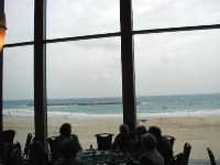 | 無事にイスラエルに着きました。入国審査はいままでで最高に早くあっという間でした。何がどうなっていたのかは分かりませんが、お祈りを感謝し、主をあがめました。写真は、ホテルで仮眠をとって、早天祈祷後の朝食時の眺め(地中海)です。 |