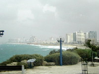 | 高い所に上がるとテルアビブが見えます。この時はまだ曇っていました。 |