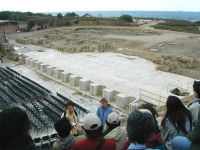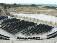 | 海沿いを北上しカイザリヤに着きました。晴れ間もでてきました。円形劇場の所に500席くらいの椅子がきれいに並べられていました。 |