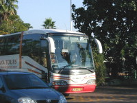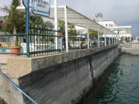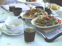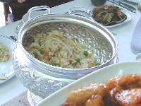 | タイ料理やさんで昼食を。チャーハンが好評でした。コーラーが大きな容器ででてきたのが驚きでした。バナナ揚げというのもありました。窓の隣りはガリラヤ湖でした。 |