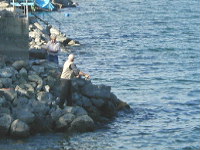 | お店から、釣りをしている人の姿が見えました。出る時に分かりましたが、他の日本人客が来ていました。駐車場にそれらしきバスがありました。結構、来ているんですね。 |