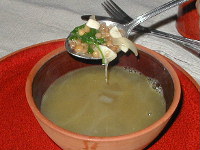 メギドからの帰りに、昔の食事を体験させてもらいました。レンズ豆の汁ものがでましたが、味付けが良くておいしかったです。 |