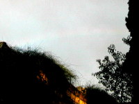 | 今日のツアーの最後はガーデンテューム(園の墓)でした。小雨がときおり降るようになりました。もうこれで最後だし..感謝!などと思っていると「虹だ〜」との声があり、みなでしばらく盛り上がりました。園の墓の上部と横の大きな木の間の部分だけでしたが見る事ができました。ここのお店で買い物をしてホテルへ。 |