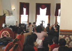アメリカで宣教しておられる方々と、互いの為に祈るときがもたれました。その前にチームで主を賛美(やすらぎの歌5集つまり日本語で)してたのですが、聖霊がいると感動されたそうです。/その後、TV番組の取材を受けました。玄関前で撮影していた人達でした。思いを超えた主のご計画に感動します。司会者みたいな人はとても陽気そうでした。ゴスペルDJって(インターネットラジオしか)聞いたことないので、この方のも聞いてみたいです。いつか。 |
