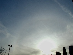 買物してアズサ街に祈りに行こうとホテルを出たら、上から「きれいな彩雲が出てる〜」と大きな声。太陽方向を見ても見えず感謝してスーパーへ。するとその先に空を見ている人達が! ここで一ケ所の彩雲から始まった光輪を見せてもらえてとても感激しました。 |