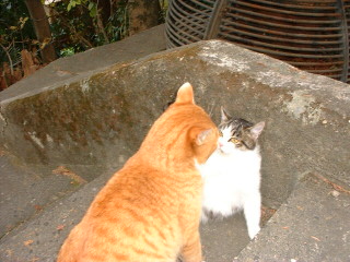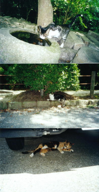 上二枚は同じく哲学の道にいる猫。一番下は大文字山の登山口に近い家で飼われていると思しき猫。 戻る