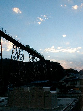 時間が厳しくなってきたので、日本海方面へまわろうかどうか悩んだのだが、とりあえずR178を回って日本海側へ。浜坂町から香住へ回っていく途中、 余部鉄橋下を通過。ここでちょっと休憩。ここをでるときは17:00であった。そのあと城崎へ回って丹後半島 へ回る予定であったが、あまりにも遅くなってしまったのでそのままR178で豊岡に。そのあとR312を経由してR426で出石へ。