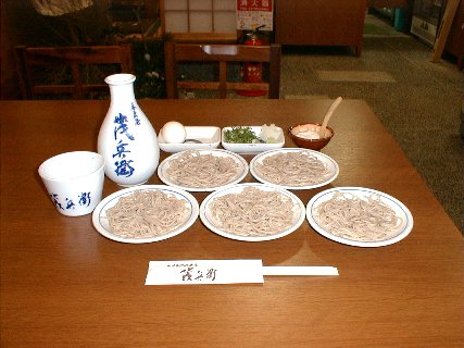 で、出石へ差し掛かる頃には時間も18:00を回っており夕食がてら出石蕎麦を食うことにする。お店をさがす。なんとなく国道沿いのお店は避けたかったのですこし町中へ。 でも町中のお蕎麦やさんはたいてい18:00ごろまでで閉まってしまう。一軒明かりがついているお店を発見したので覗いてみるとこちらも店じまい中。 そこの人にどこか開いてる店はないかとたずねてみると、すぐ先にあるお店を紹介してくれた。そこがこちら茂兵衛さん。 おみせの構えはこんな感じ(暗くてすいません)。で、皿蕎麦1人前を頼みました。 写真にもある通り一人前は5皿しかないので追加で5皿注文。さっぱりいただきました。手打ちでシコシコとコシがあってとても おいしいお蕎麦。いろいろお話させていただいて楽しいひとときをすごさせていただきました。たいへん満足。ここのお店はイチオシ!!。お別れするときは、わざわざ ご主人がお見送りに来てくださいました。