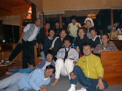 | 1830 | 夕食。今日のメニューはイタリアン料理。イタリア風料理ながら、マツタケ!など日本の季節のモノをうまく取り入れた、 味・量ともに大満足の料理。ビールで乾杯。乾杯のあとは各自の自己紹介。世界一ディープなRXワールドが繰り広げられる。 |