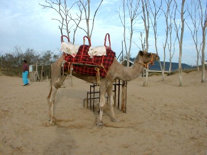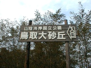 鳥取からはR9を京都方面へいくのだが、どうやら鳥取砂丘が近いようだ。せっかくだから寄って行こう。R9からはなれてすぐに 鳥取砂丘へ到着。テクテクとあるいて砂丘へはいっていくと、まぁでかいこと・・・。写真から わかるかな?ちゃんとラクダもいるんだと感動する(笑)。