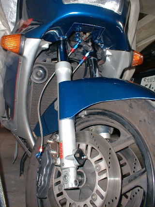 翌日ブレーキのタッチを見るためにチラッと乗ってみる。うむ、イイ感じ♪。 作成したホースからオイル漏れがないかを慎重に確認。漏れのないことを確認。うむ、これなら乗れそうだ。 というわけで今日は墓参り&実家自宅の往復で約50Kmほど試乗する。フルOHのおかげでフォークそのものの「機械」としての動作がすこぶるよくなったことを即座に実感。 AVDSがなくなり最初は違和感あるかぁ〜っと思っていたが全くの杞憂で、 素直に、そして好感をもって受け入れることができる挙動だ。 こうばちょうからは「少しやわらかく感じるかも」とアドバイスを頂いていたが、私の感覚ではその印象はなかった。 路面のうねりやギャップなどにも素直に追従し、変なキックバックもなく、 低速&退避動作の為の瞬間的なフルブレーキング時にも以前はAVDSの動作が空振りして「カツーン」と いい音して底ヅキしていたのが全くなくなり、奥でイイ塩梅にふんばる。安心してブレーキが握れる。 うむ。プログレッシブの社名はダテじゃぁない。 しかし純正のフォークスプリングには少し驚いた。あのスプリングだと本当にエア圧が正常でなければ少し怖いものがある。