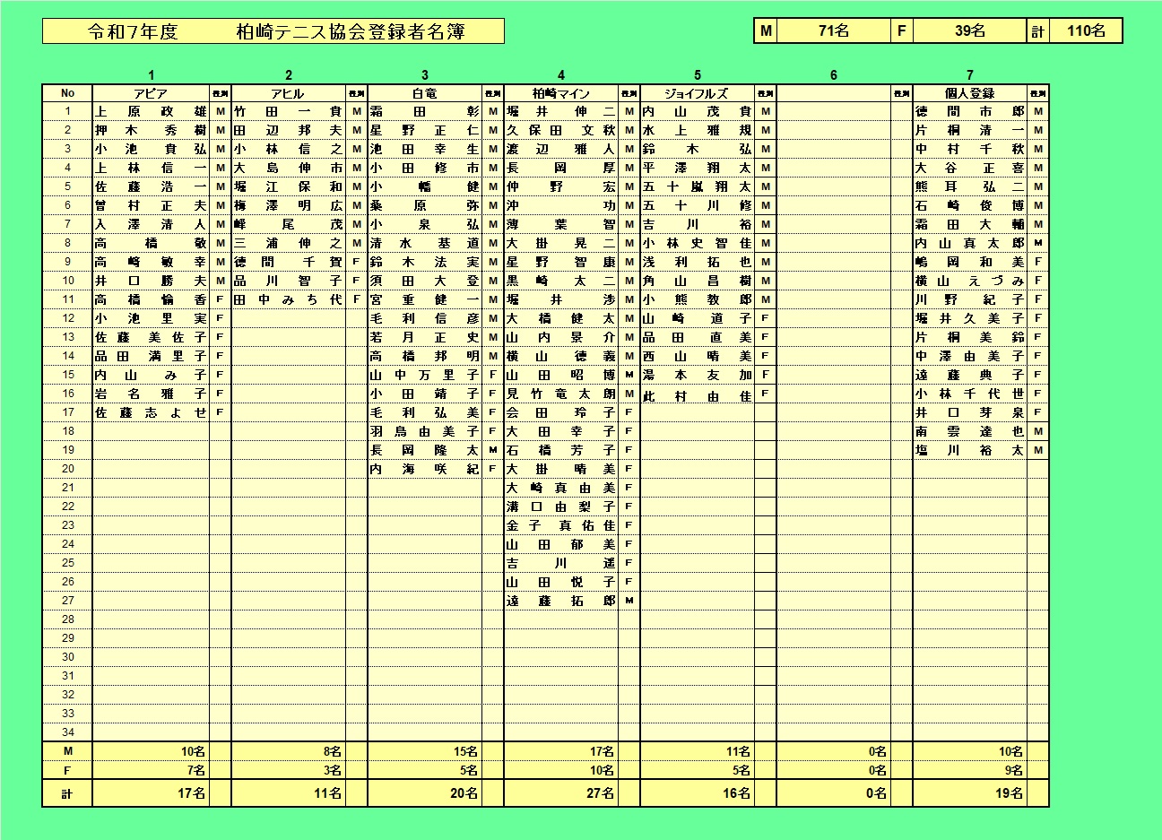 柏崎テニス協会規約 柏崎テニス協会登録者名簿(令和7.12.1 現在)