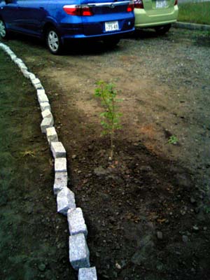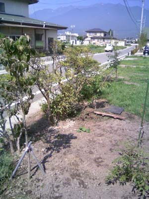 道沿いに、前の家から持ってきた、つつじが植わりました。